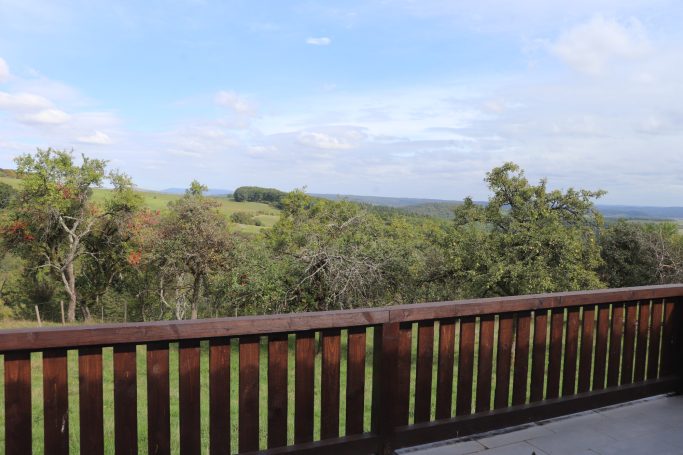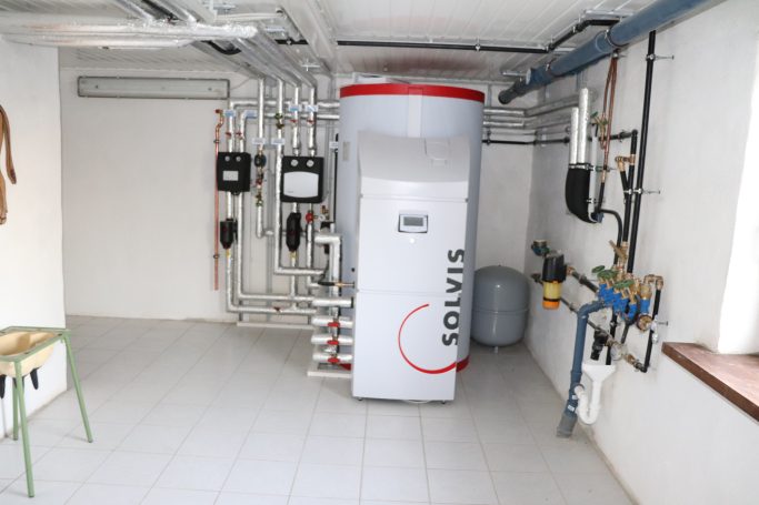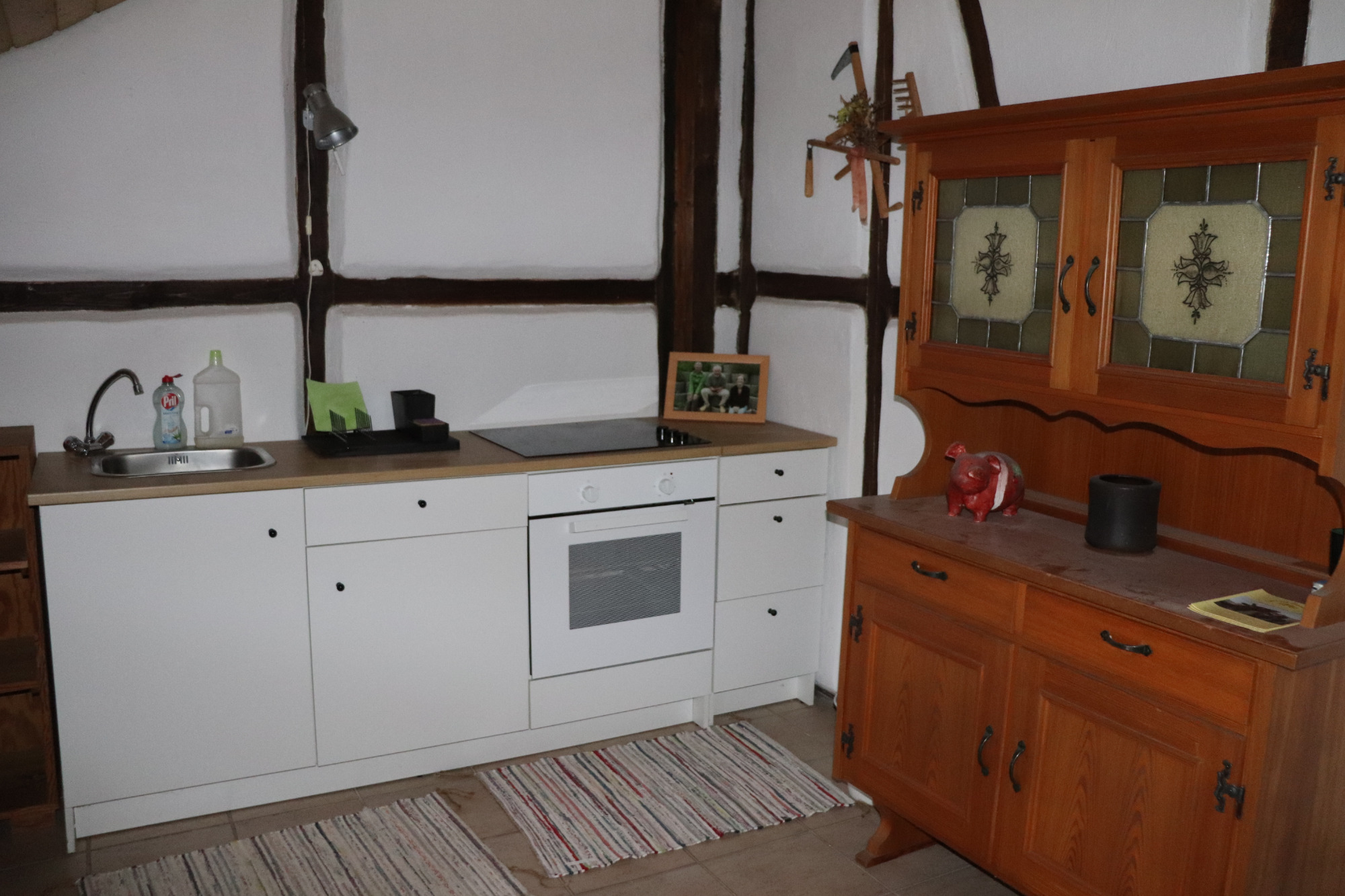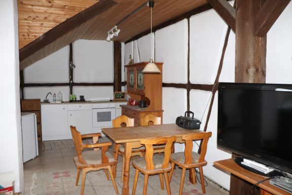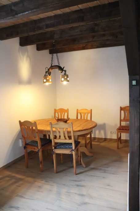 Bild 1: Diele, Bild 2: Wohn/Esszimmer mit Ausgang zur Terrasse, Bild 3: Essbereich im Wohnzimmer, Bild 4: Küchenausschnitt, Bild 5: Blick von der Terrasse auf die Streuobstwiese, Bild 6: Heizungsanlage